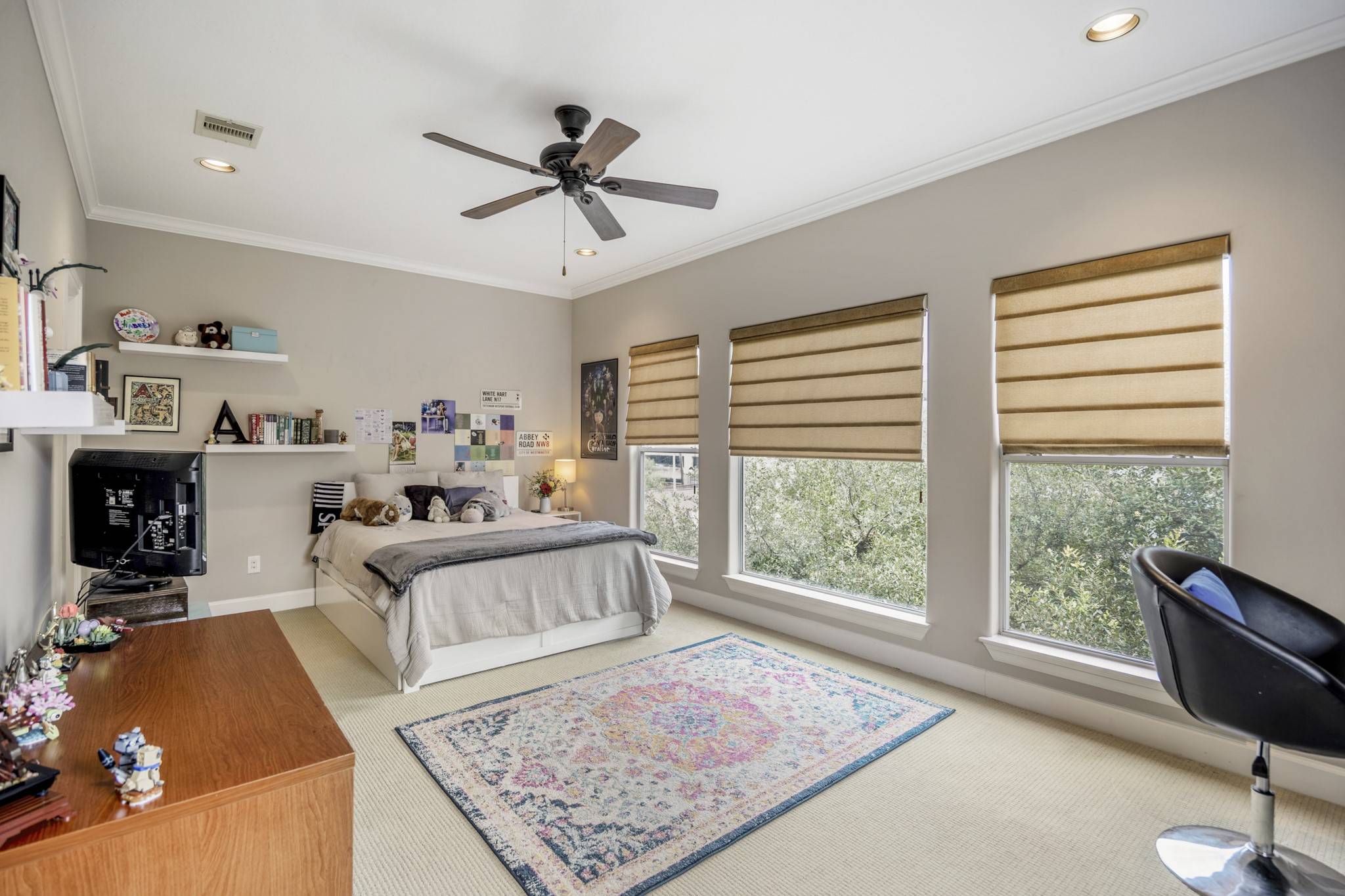 1013 Crocker affords the desirable combination of Buffalo Bayou Park, an impressive downtown view, and restaurants like Flora and Bludorn! With three bedrooms and three & a half baths, generous spaces are evident. A gallery entry leads to the backyard and first-floor bedroom/study with built-ins, an ensuite bath & patio. The second floor boasts an open kitchen with a balcony overlooking the backyard, dining, & living with a fireplace flanked by built-ins. French doors provide access to an enjoyable balcony. The third floor includes the primary suite with a private balcony with an impressive downtown skyline! The bath features separate vanities, a jetted tub, a shower & walk-in closet. The secondary bedroom with hall bath & utility room nearby. The backyard is private & well-suited for play or entertaining. The double-wide independent drive will be appreciated by guests.